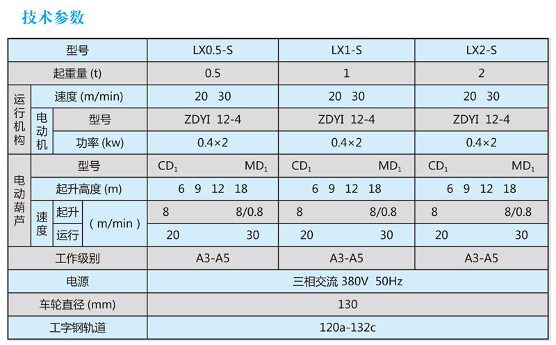 LX型與CD1型、MD1型電動(dòng)葫蘆配套使用,成為一種有軌運(yùn)行的輕小型起重機(jī)。用于機(jī)械裝配及倉庫等場所,起重量為1-10T,跨度為3.5-15.5米,工作級(jí)別為A3,工作環(huán)境溫度為-25℃--40℃。